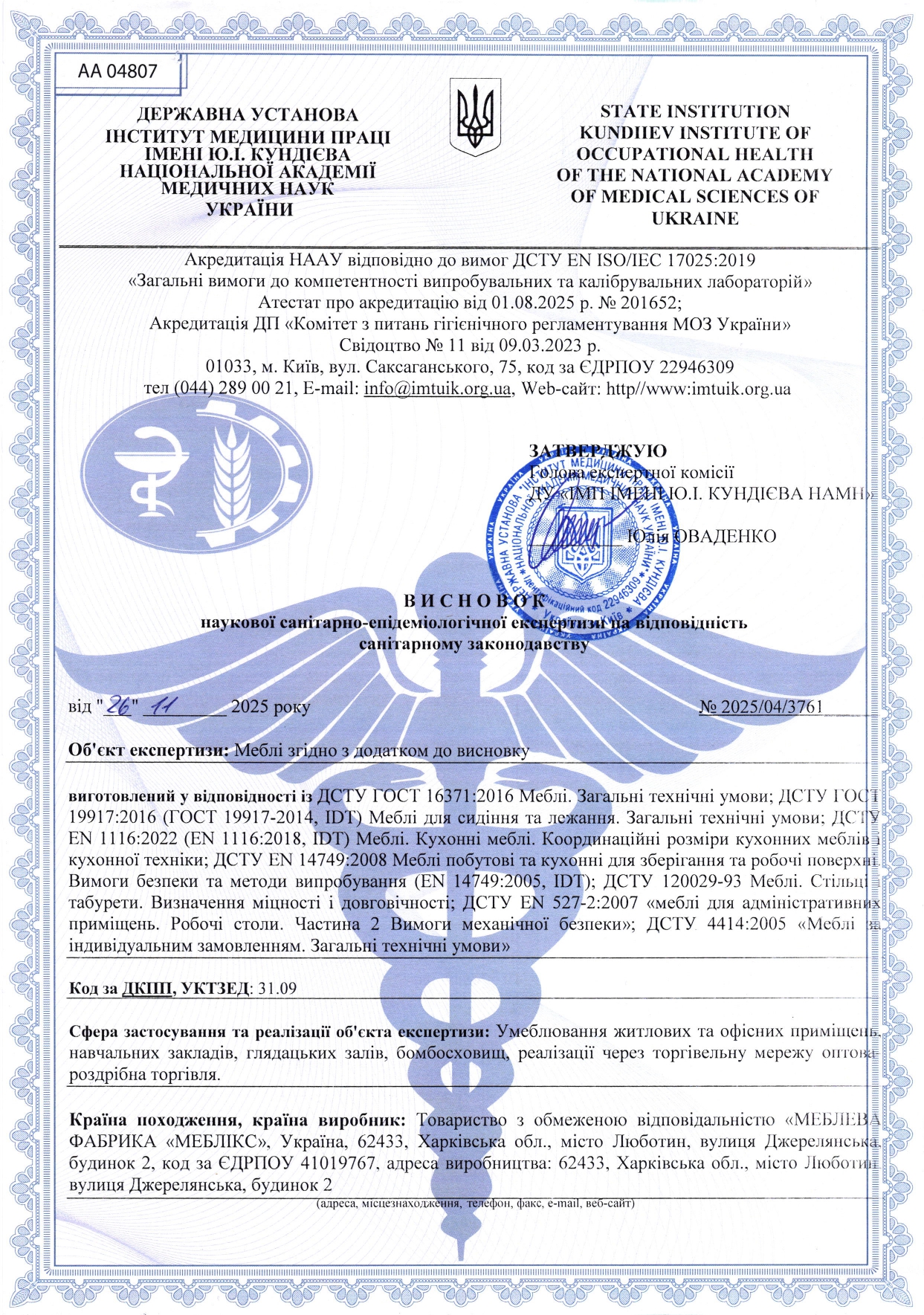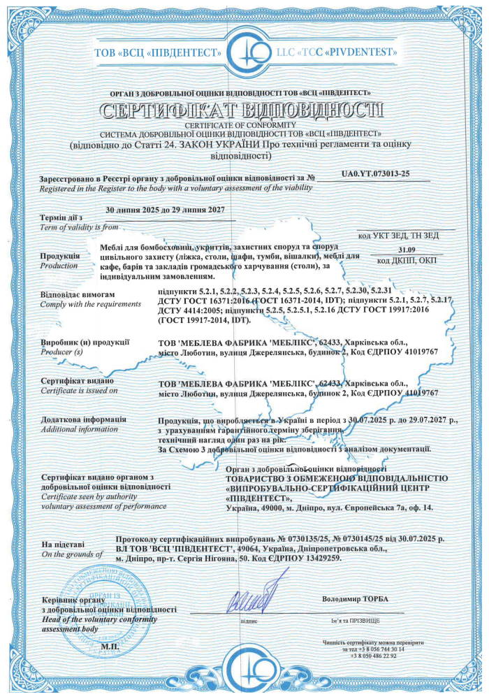 Для виготовлення столу наші майстри використовують надійні та якісні матеріали, які мають належні сертифікати. Також на товар ми надаємо гарантію на експлуатацію 1 рік.